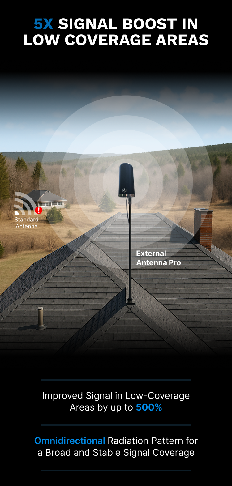 Up to 5x stronger in weak or remote areas.